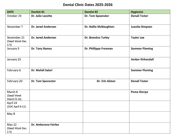 COCC Dental Assisting Clinic Dates and Volunteer Opportunities
